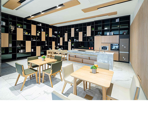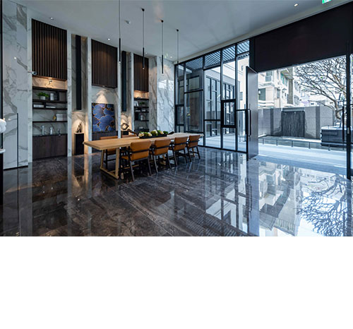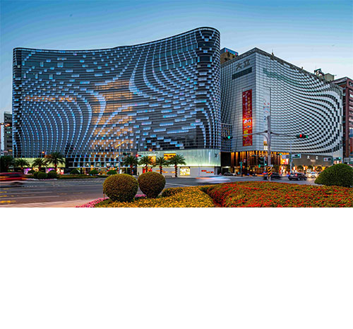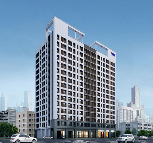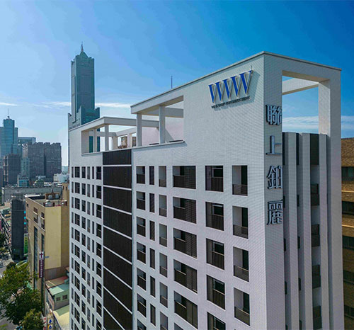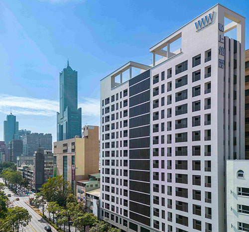 透過現代簡約的切割手法,適度的留設實體面增加建築的厚實感,以帶出精品建築物的質感,豐富此建築物在都市景觀的表情,成為亞灣上的視覺焦點。